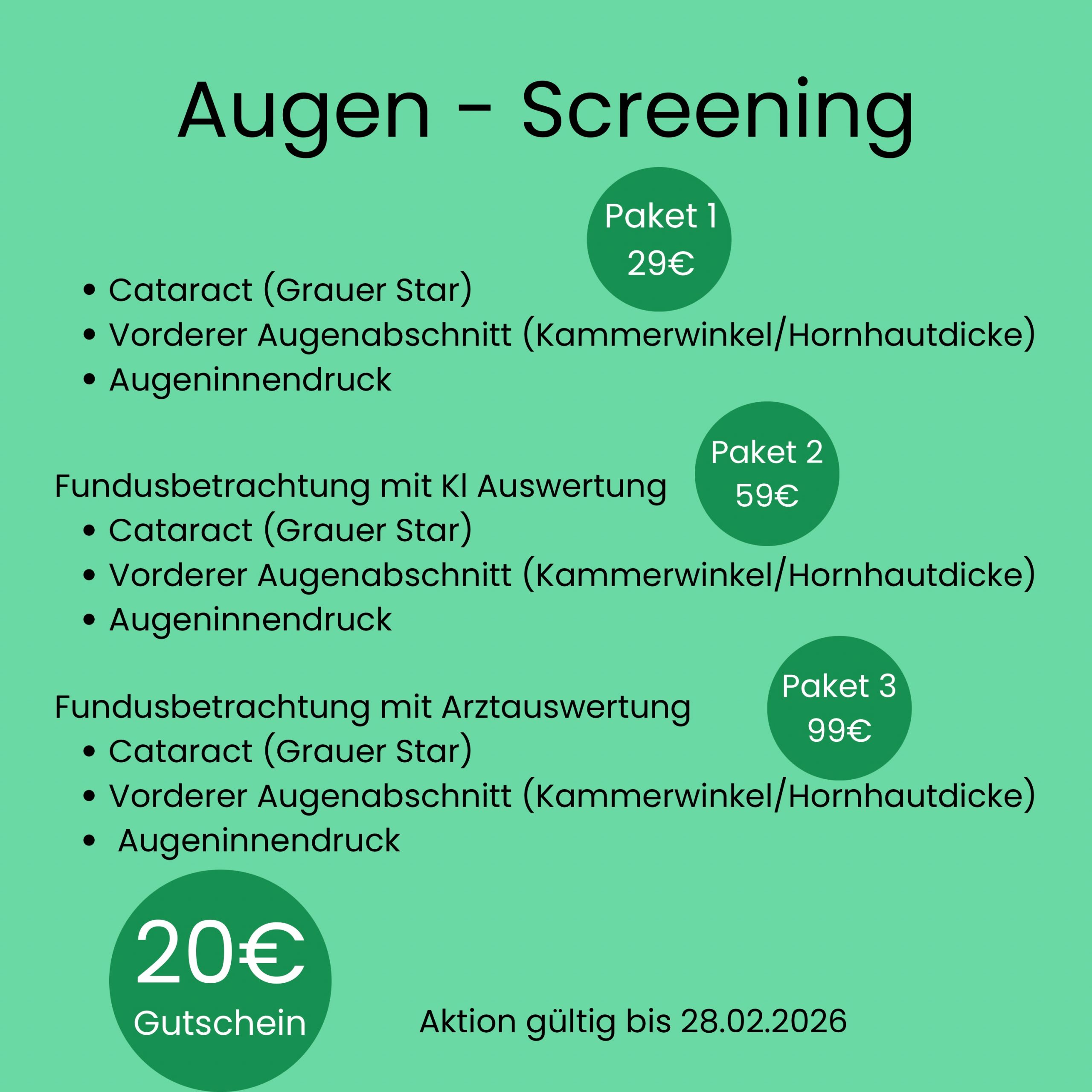 Lassen Sie sich jetzt tief in die Augen schauen. Durch die Untersuchung Ihrer Netzhaut, des Augeninnendrucks und des Vorderen Augenabschnitts können viele vermeidbare Risiken frühzeitig erkannt werden.